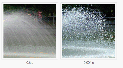 | Exemplo de tempo de exposição mais lento (esq.) e mais rápido (dir.) |